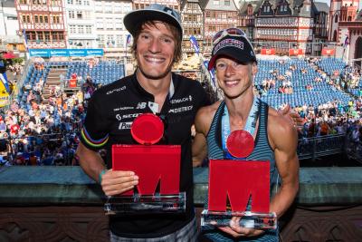 Es war der große Tag des Sebastien Kienle. Punktgenau zu seinem 30. Geburtstag feierte der regierende Weltmeister auf der IRONMAN 70.3-Distanz nicht nur seinen ersten Sieg auf der IRONMAN-Distanz, sondern krönte sich bei der IRONMAN European Championship in Frankfurt auch gleich mit neuem Streckenrekord (7:55:14) zum Europameister. Auf Platz zwei folgte der regierende IRONMAN-Weltmeister Frederik van Lierde (BEL, 8:00:25), auf Platz drei der deutsche Olympiasieger auf der Kurzdistanz von 2008, Jan Frodeno, der sein erstes IRONMAN-Rennen in 8:07:05 Stunden beendete. Eine Leistung, die umso höher einzuschätzen ist, da Frodeno auf der Radstrecke von technischen Problemen geplagt wurde. Kienle schmückte seinen ersten Sieg nicht nur mit einer neuen Gesamtbestzeit (Timo Bracht, 2009: 7:59:16), sondern pulverisierte dabei auch gleich den alten Rad-Streckenrekord (Andreas Raelert, 2010: 4:20:35). Stichwort Raelert: Der Ex-Europameister musste das Rennen auf Laufstrecke aufgeben.